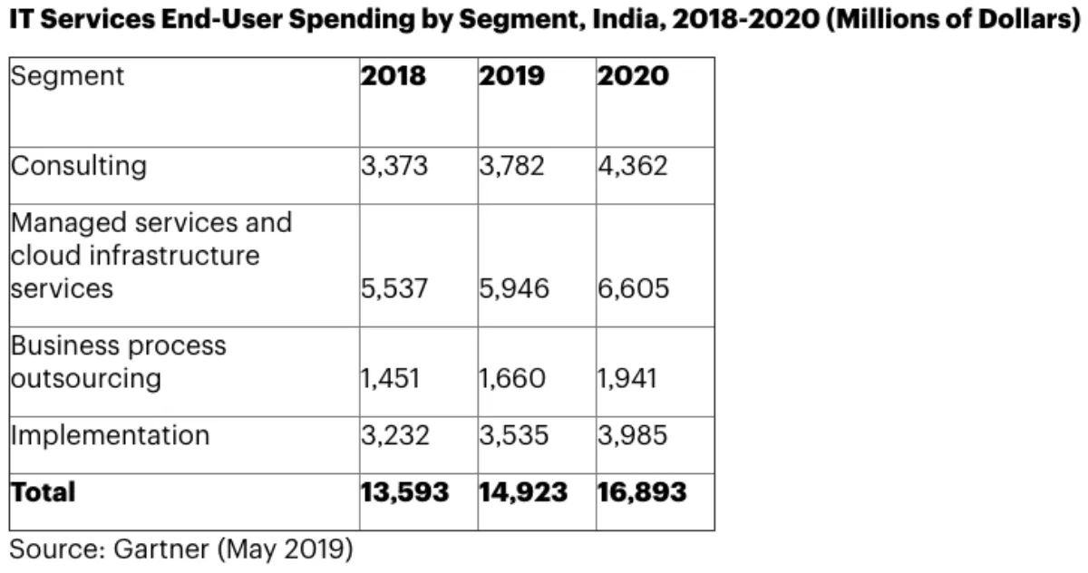 According to new data from Gartner, end-user spending on IT services in India is on track to total nearly $15 billion in 2019, an increase of 9.8% from 2018.
